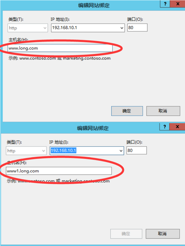 3、使用不同的主机头名架设多个Web网站