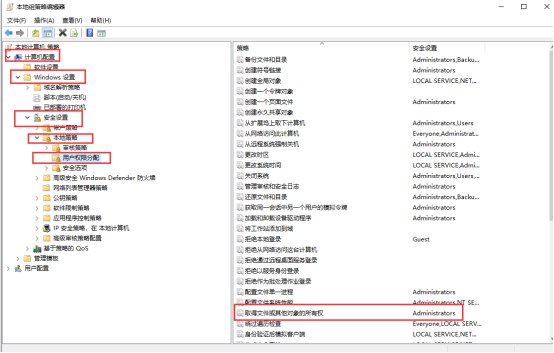 设置取得文件或其他对象的所有权只指派给Administrators用户组