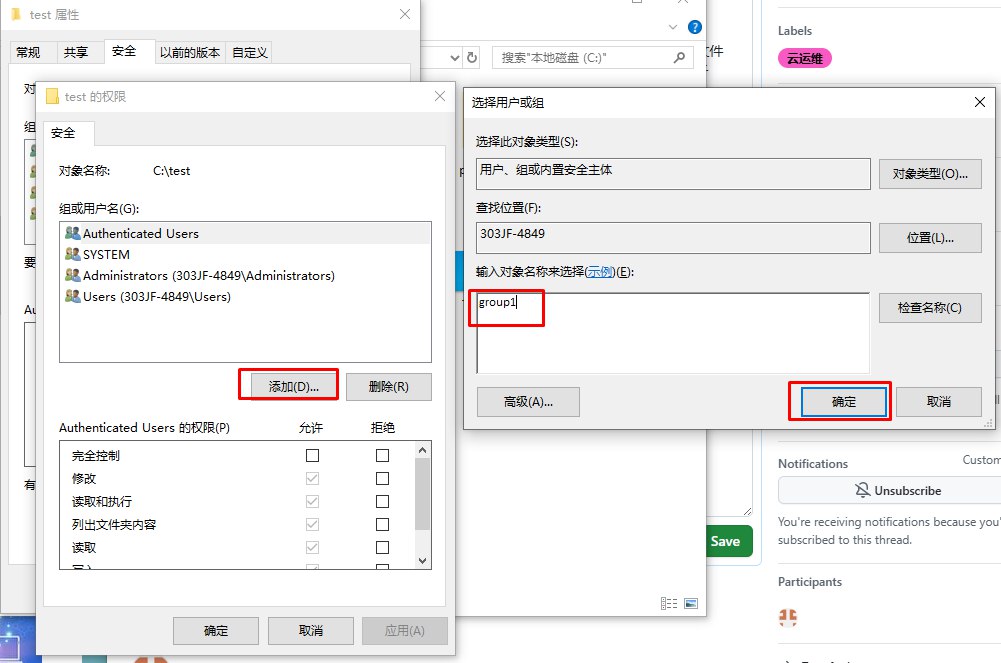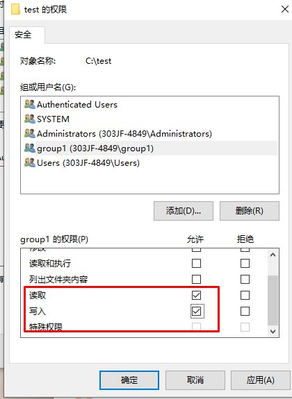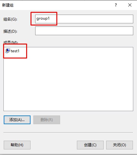 在系统中添加用户test1;添加组group1、group2;在c盘根目录下新建文件夹test,test文件夹中,新建学号.txt文件,并写入任意内容。要求:group1对test文件具有读写权限;group2对test文件拒绝读写权限;test1属于group1组,test1属于group2组;验证test1对test文件夹中txt文件的读写权限。