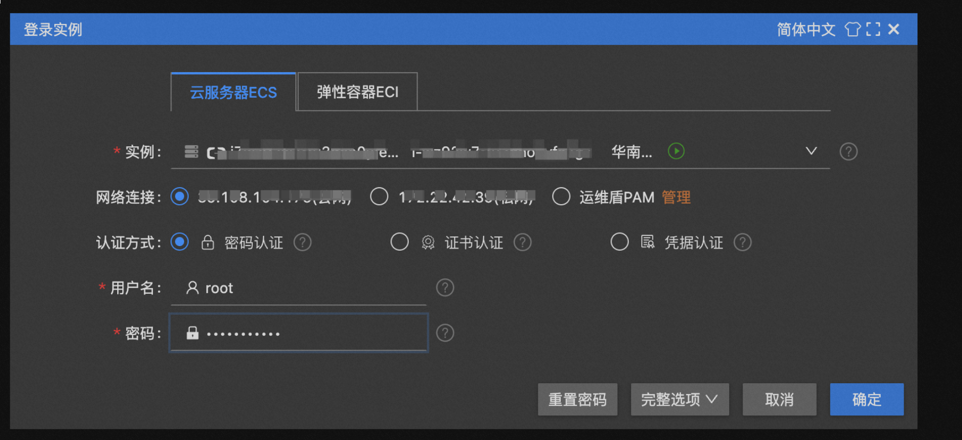 输入ECS服务器登录用户名和密码,登录ECS。