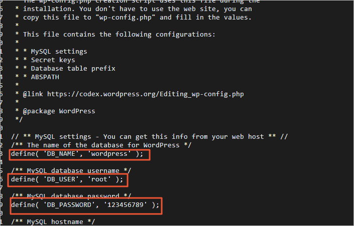 3.3 执行以下命令,修改wp-config.php配置文件。