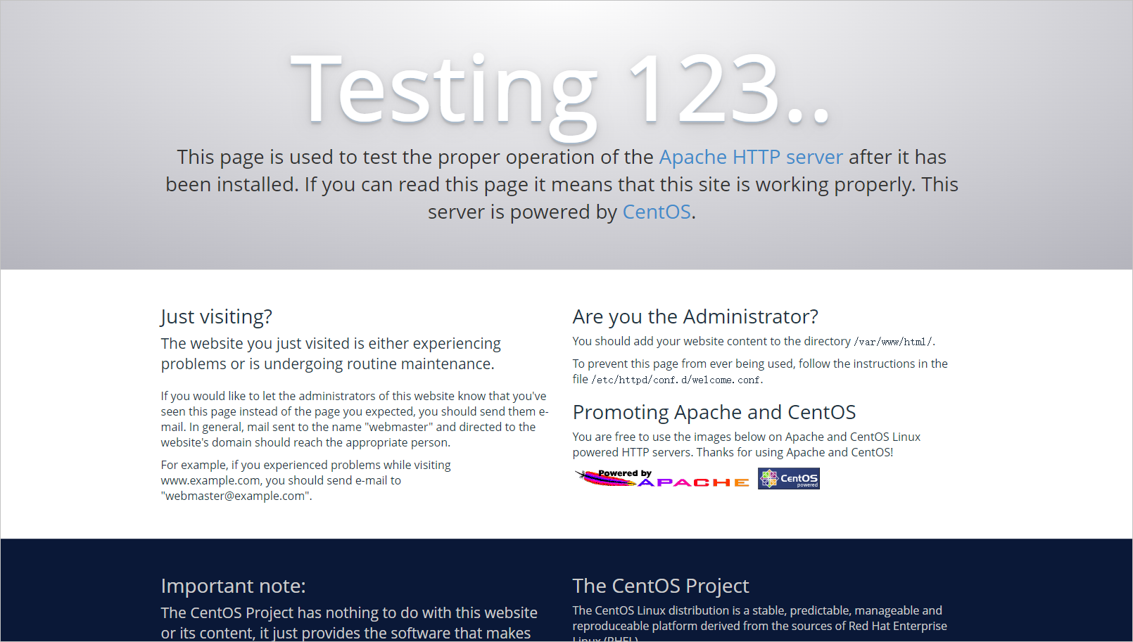若返回页面如下图所示,说明Apache服务启动成功。