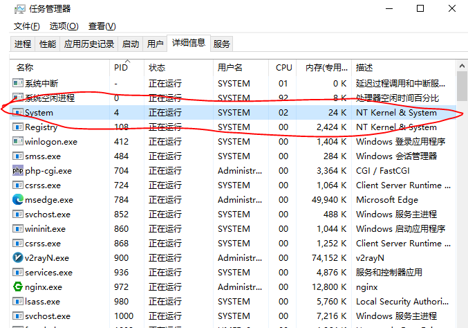 在任务管理器中关闭对应的PID进程