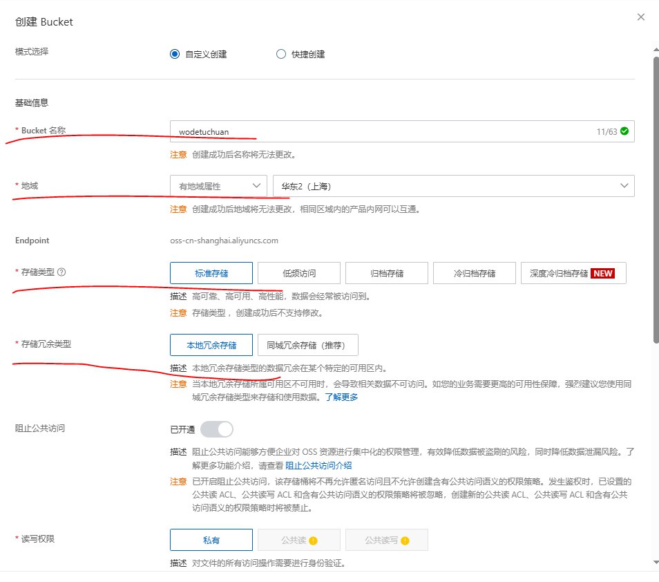 - 设定Bucket:刚刚在阿里云OSS中创建的Bucket名称