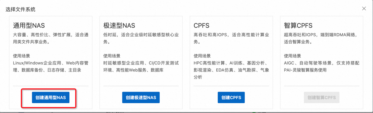 若您未领用NAS免费资源,或者是使用个人账号资源,创建NAS会产生费用,请您注意个人资源的费用使用情况,费用详情请参看计费概述。
