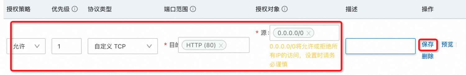 开通IPv4端口:选择SSH(22),HTTP(80),RDP(3389)。