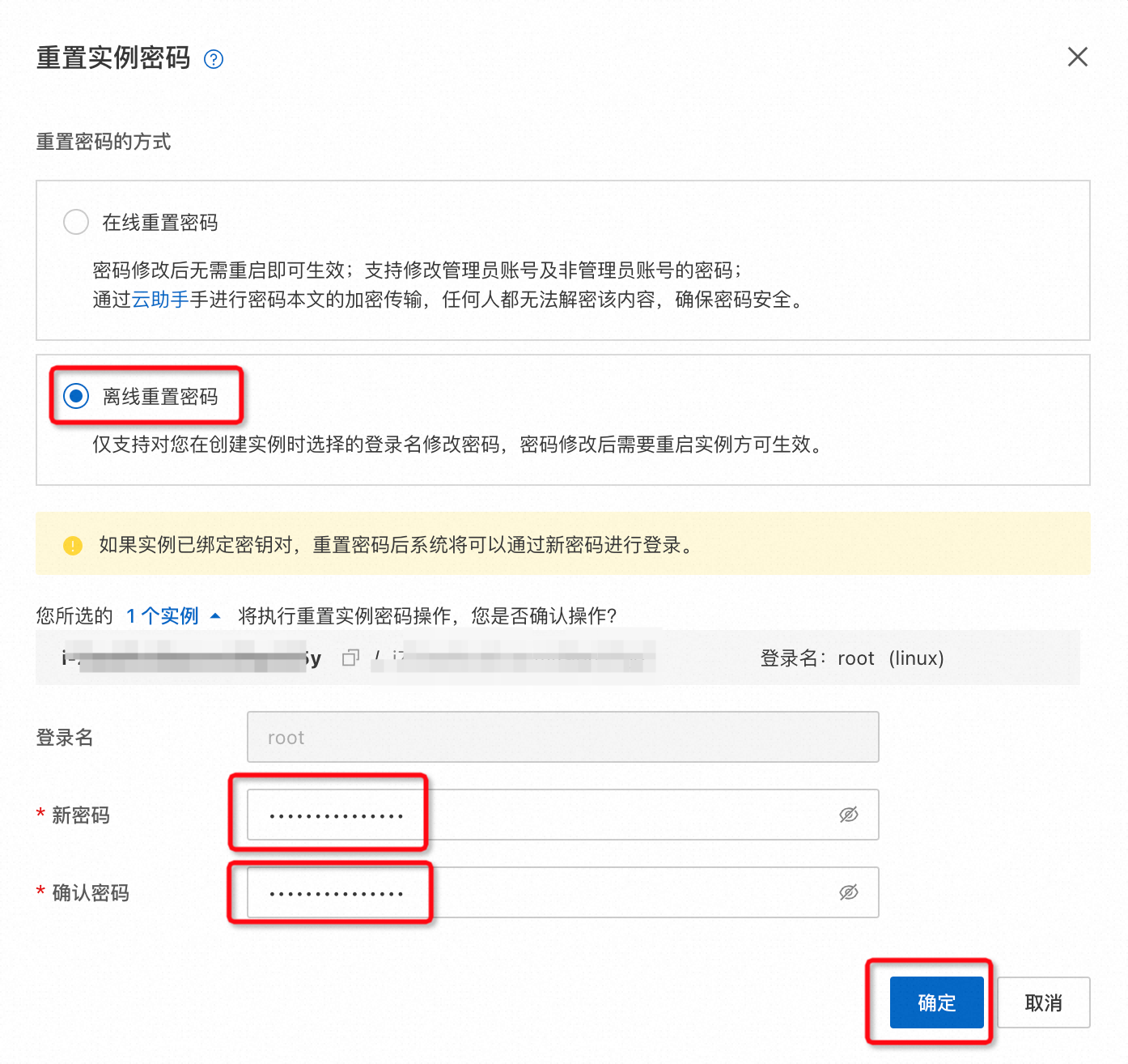 3.2 选择离线重置密码,输入新密码,并确认密码,点击确认保存密码。