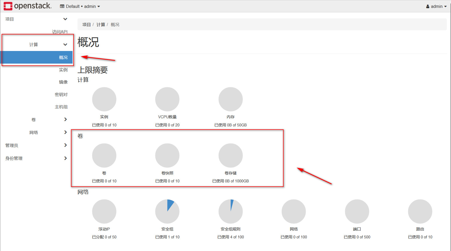 通过 Dashboard 查看卷情况